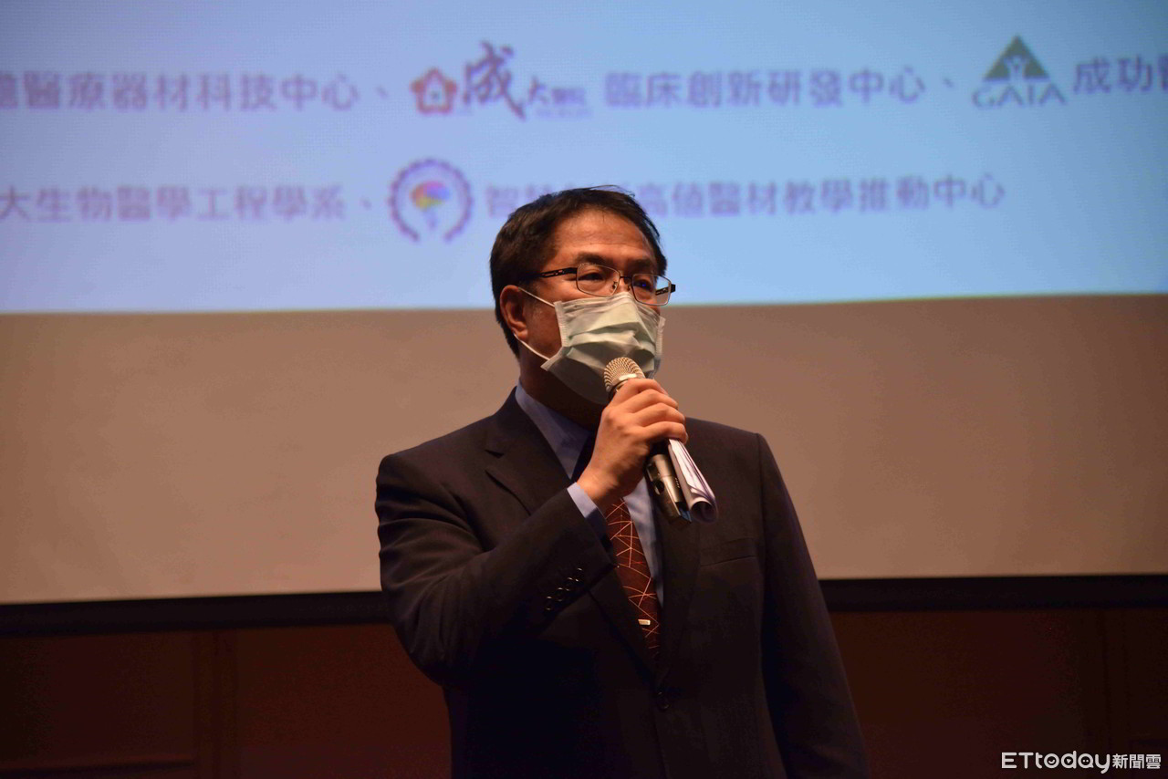 ▲成大、成大醫院創新醫材成果期中發表暨聯誼會登場,除發表醫療新創科技,並進行跨界技術成果交流,台南市長黃偉哲等人致詞。(圖/記者林悅翻攝,下同)