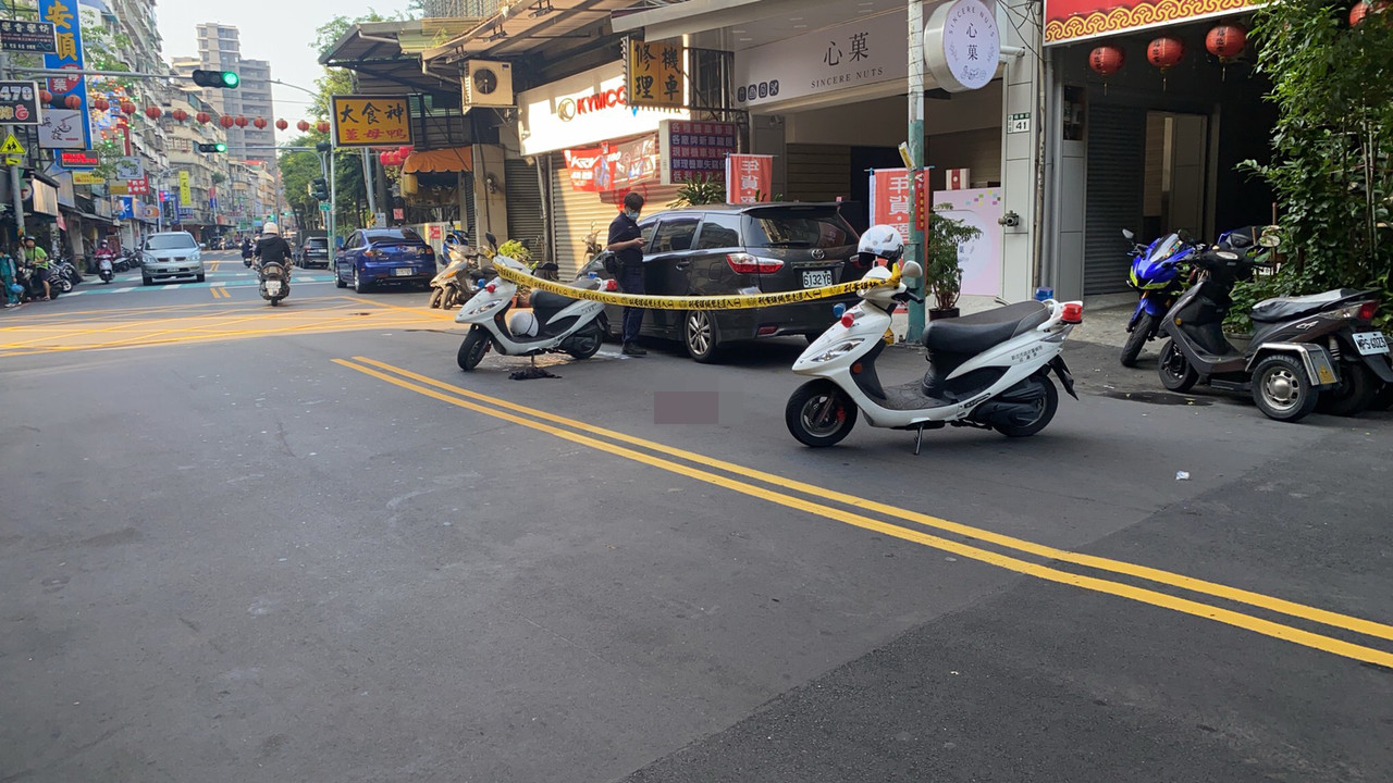 ▲地面遺留傷者血跡,警方在現場拉起封鎖線進行採證。(圖/記者游宗樺翻攝)