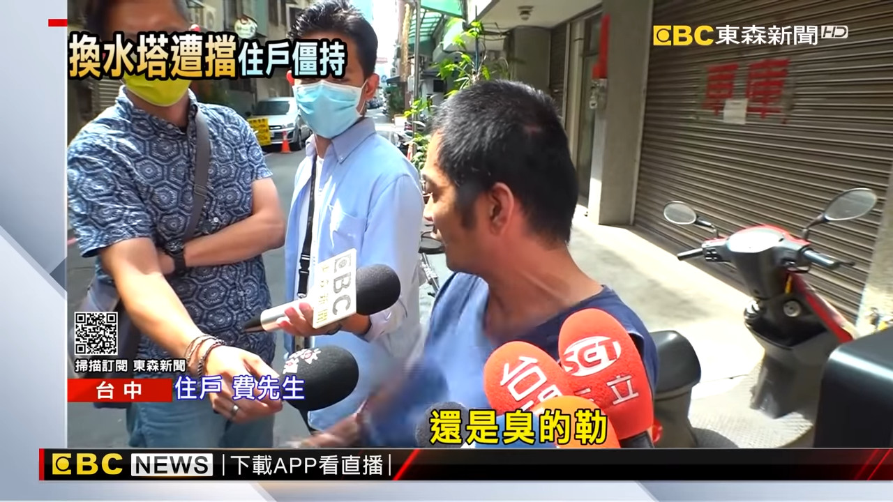 台中市中區大誠街一棟50年的社區大樓,因年久失修曾發生意外,管委會決定將電梯、水塔進行修繕作業,但住戶們卻沒有共識而大吵,甚至有人以人肉阻擋吊車安裝水塔,讓正值缺水期間的105間住戶沒水可用,只能用髒水洗澡。