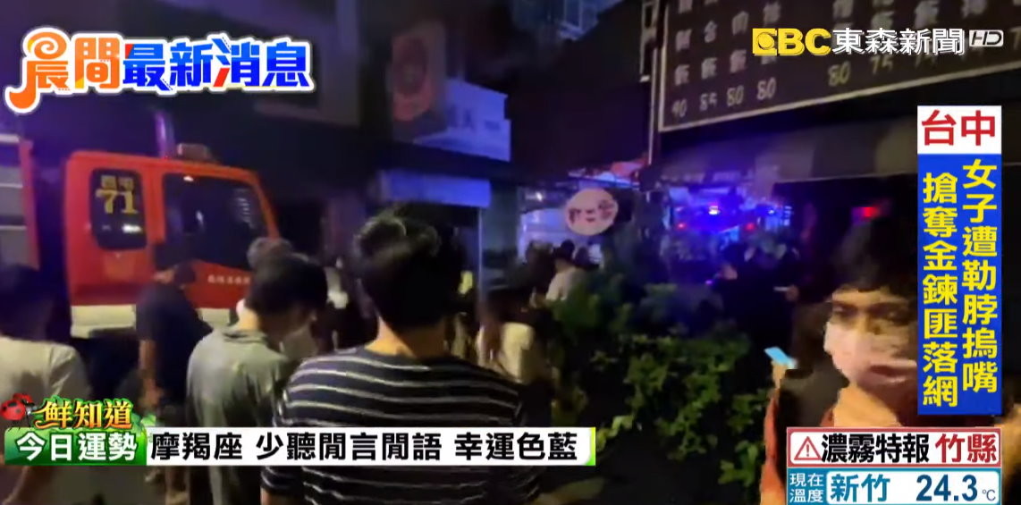 《東森新聞》報導,巷子裡佈滿濃煙,消防隊員獲報到場拉水線灌救,許多學生圍在大樓四周。一名學生表示,火警是在5樓發生;另一名學生抱狗逃生,直呼狗嚇死了。
