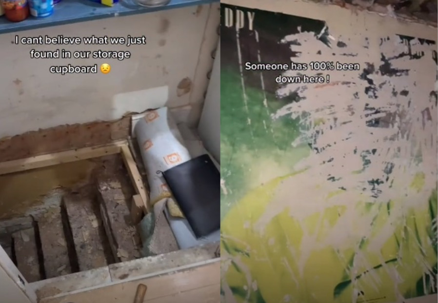國外一名女子近來意外在自家發現隱藏地下室,影片中可看到,神秘空間就藏在儲藏室的地板下,她害怕走下陰暗的密室中,居然發現藝術品等有人曾在這裡生活的痕跡,驚悚的影片內容獲得75萬人觀看。