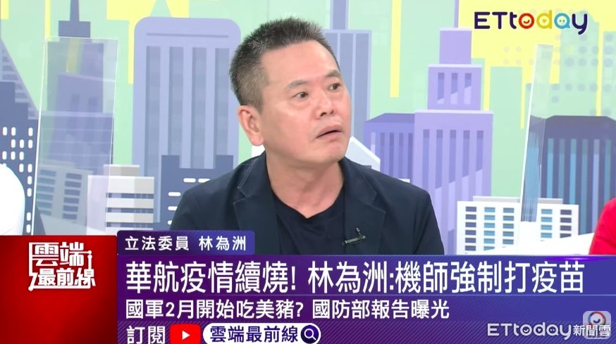 華航諾富特案已35人確診,中央流行疫情指揮中心研判華航內部有隱形傳播鏈,昨(10)日公佈「清零計畫2.0」,包含前艙機組員(機師)全數召回檢疫、風險組及安全組不得混飛等4大重點。國民黨立委林為洲11日則在ETtoday《雲端最前線》節目中提及,機師、空服員可說是第一線,還比醫療人員更早接觸到病毒,「機師其實要強制打疫苗,我建議啦!」