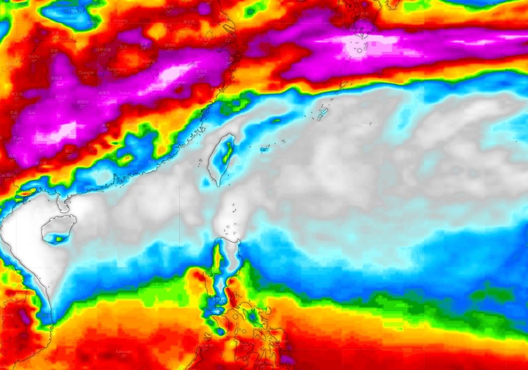 天氣粉專「台灣颱風論壇│天氣特急」今PO出未來10天雨區分布圖,可見台灣幾乎被太平洋高壓控制,圖中白、灰色地方幾乎0降雨,預期在高壓籠罩下,將乾熱到月底。