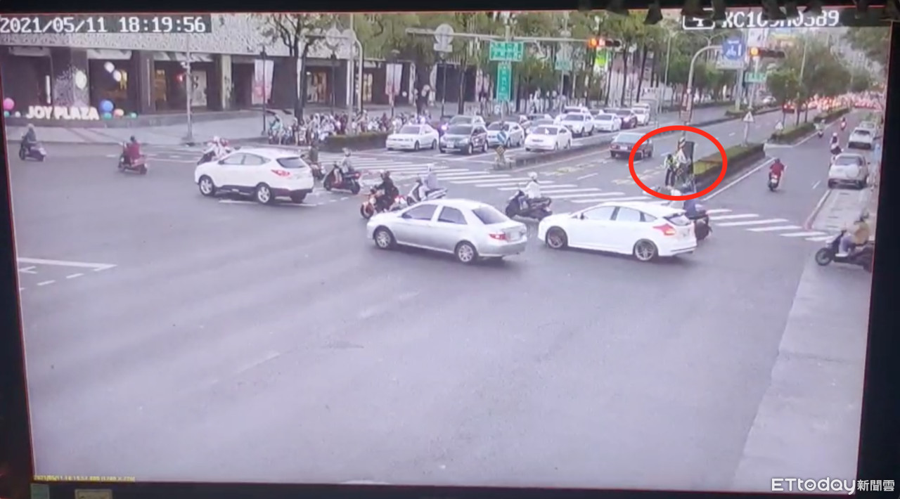 監視器畫面顯示,董姓員警在路中央執行交管,不料一名男子從路邊橫跨2個車道悄悄靠近,隨後無預警襲擊。當下員警本能地往後退,但男子朝他丟擲鐵槌後逃跑。