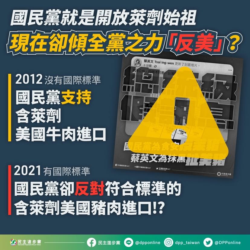 ▲民進黨指出,在2012年還沒有國際標準時,江啟臣投票贊成進口萊牛。(圖/民進黨臉書)