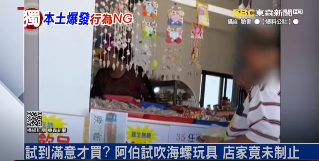 有沒有公德心?民眾在臉書社團指控,一名阿伯在購買海螺玩具時,為了挑選出想要的商品,竟一個一個「試吹」。期間店家非但沒有制止,甚至在賣出商品後也沒有進行消毒,誇張的行徑讓網友直呼「真的很噁心」。