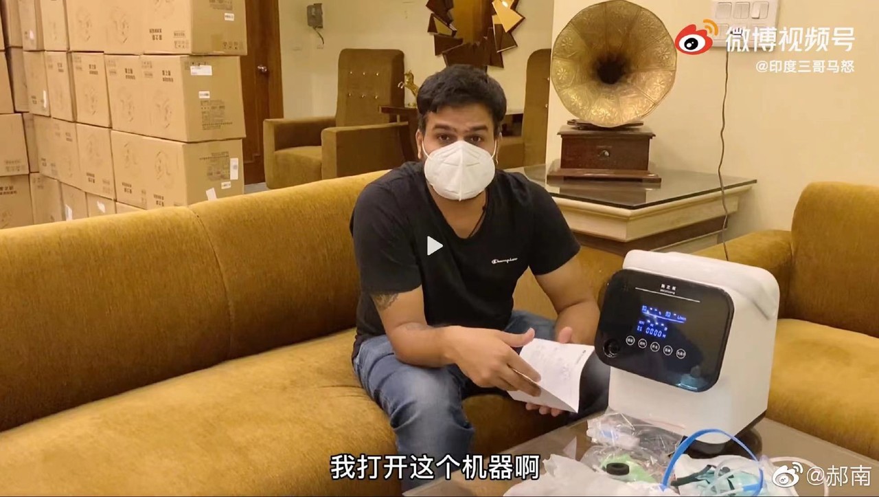 ▲印度網紅買大陸製氧機,被網友發現買非醫療機。(圖/翻攝 印度三哥馬怒微博)