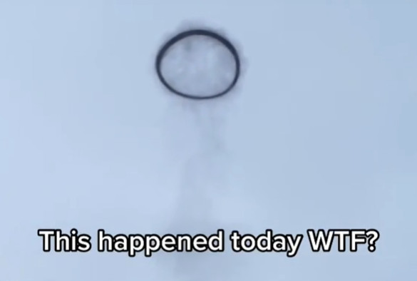TikTok用戶@farmmommalife在平台上傳一段詭異的影片,原來是她家的監視器拍到一個黑色圓圈在天空中漂浮,只見黑色圓圈先是幾乎停在半空中不動,周圍還不斷冒出陣陣煙霧,接著緩緩地往上飄;她也立刻拿起手機錄下這段畫面並驚呼,「這到底是怎麼回事?」