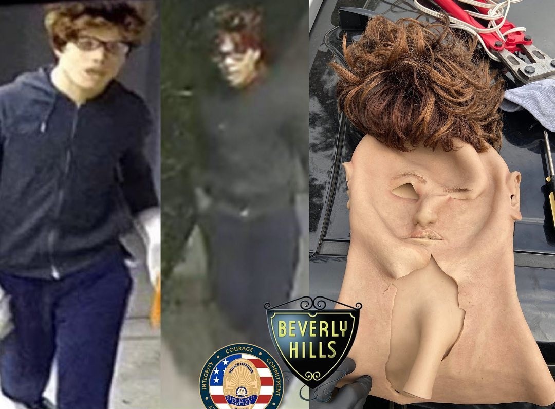 ▲警方表示,在監視器中見到這名裝扮奇特的路人時就察覺有異,面具上的嘴巴一直張開著,從未必合。(圖/翻攝自臉書/Beverly Hills Police Department)