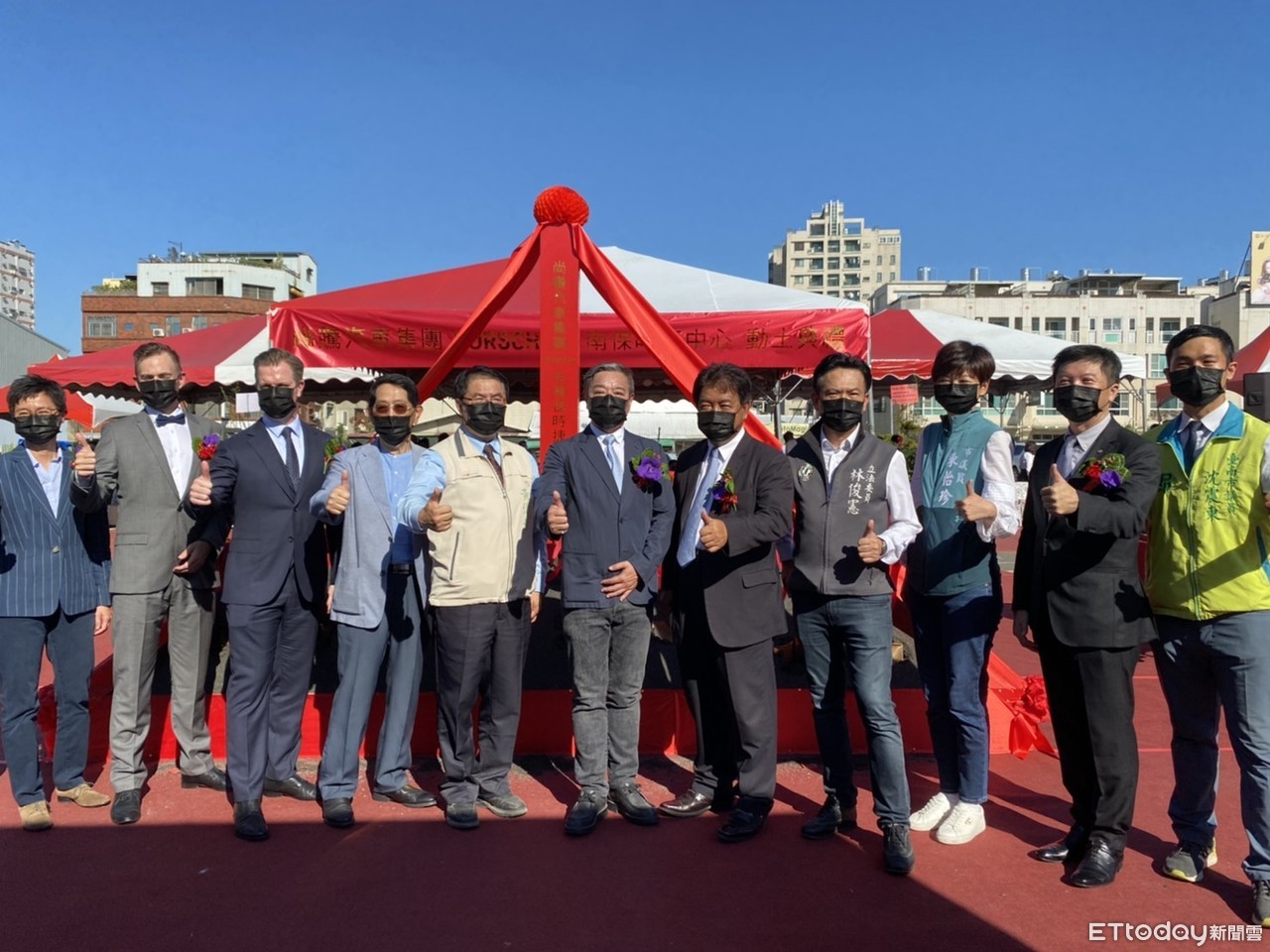 ▲斥資6億元、佔地逾1600坪的台南保時捷中心舉行動土典禮,台南市長黃偉哲、台南市議長郭信良、立委林俊憲等多人到場祝賀。(圖/記者林悅翻攝,下同)