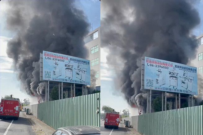 ▲台南工廠火警。(圖/記者林悅翻攝)