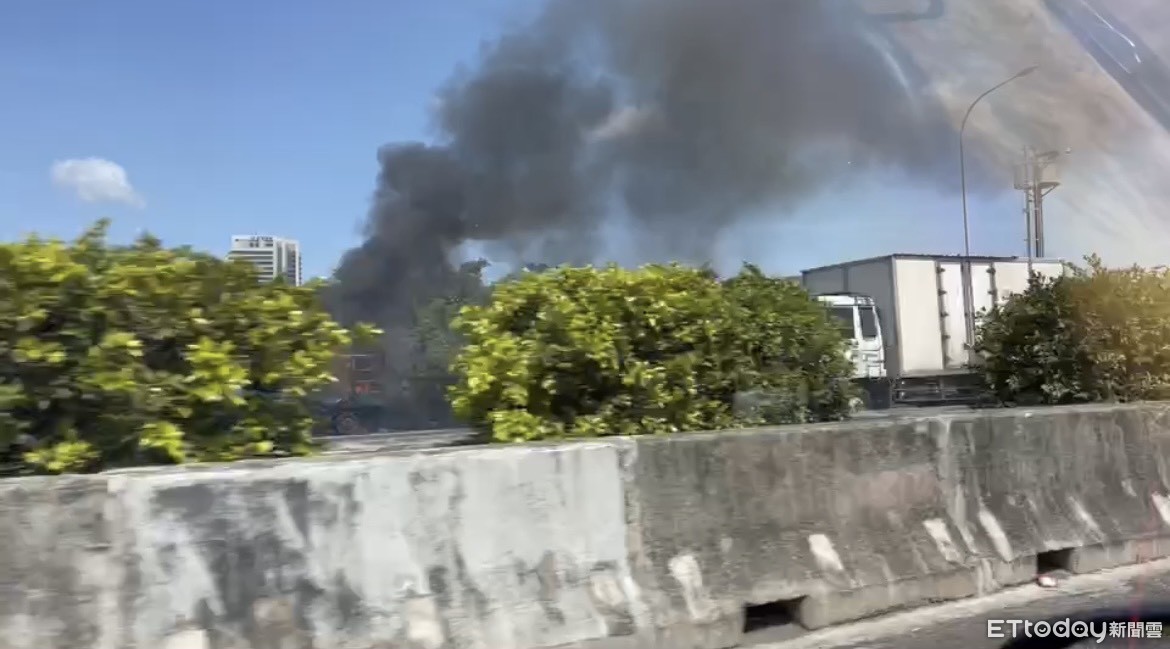 ▲國道1號南向360.7公里楠梓路段發生火燒車 。(圖/記者吳奕靖攝)