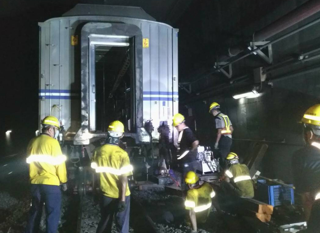 台鐵局第9283次故障迴送列車,於今日凌晨在台北=松山間駄運車一軸出軌,經派員搶通,於10:47恢復雙線通車。事故詳細原因運安處調查中。本次事故截至10:00止,計影響49列次、2,063分、旅客約19,470人。
