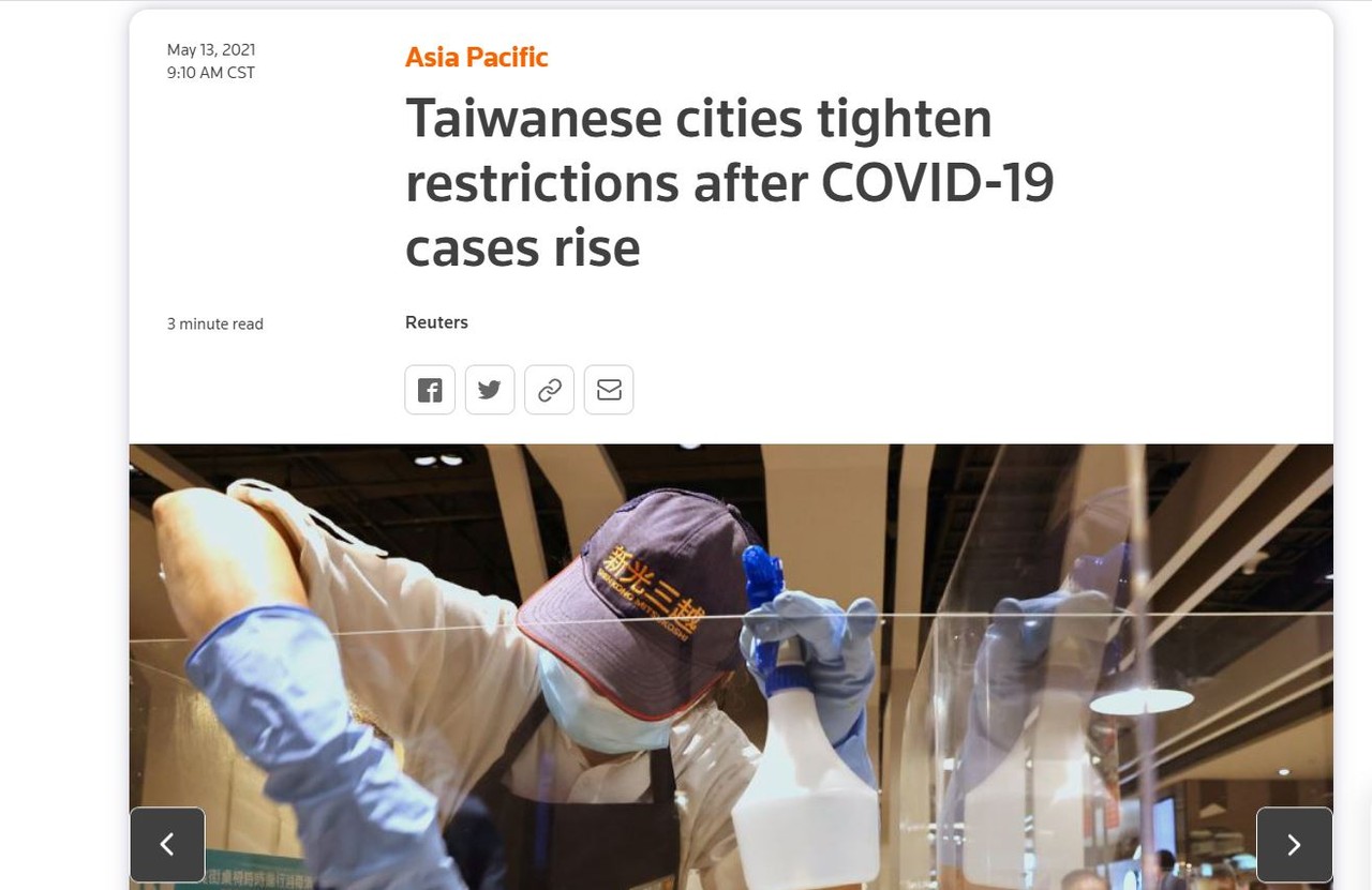 ▲《路透社》報導台灣近日防疫限制加嚴。(圖/翻攝路透社網站)