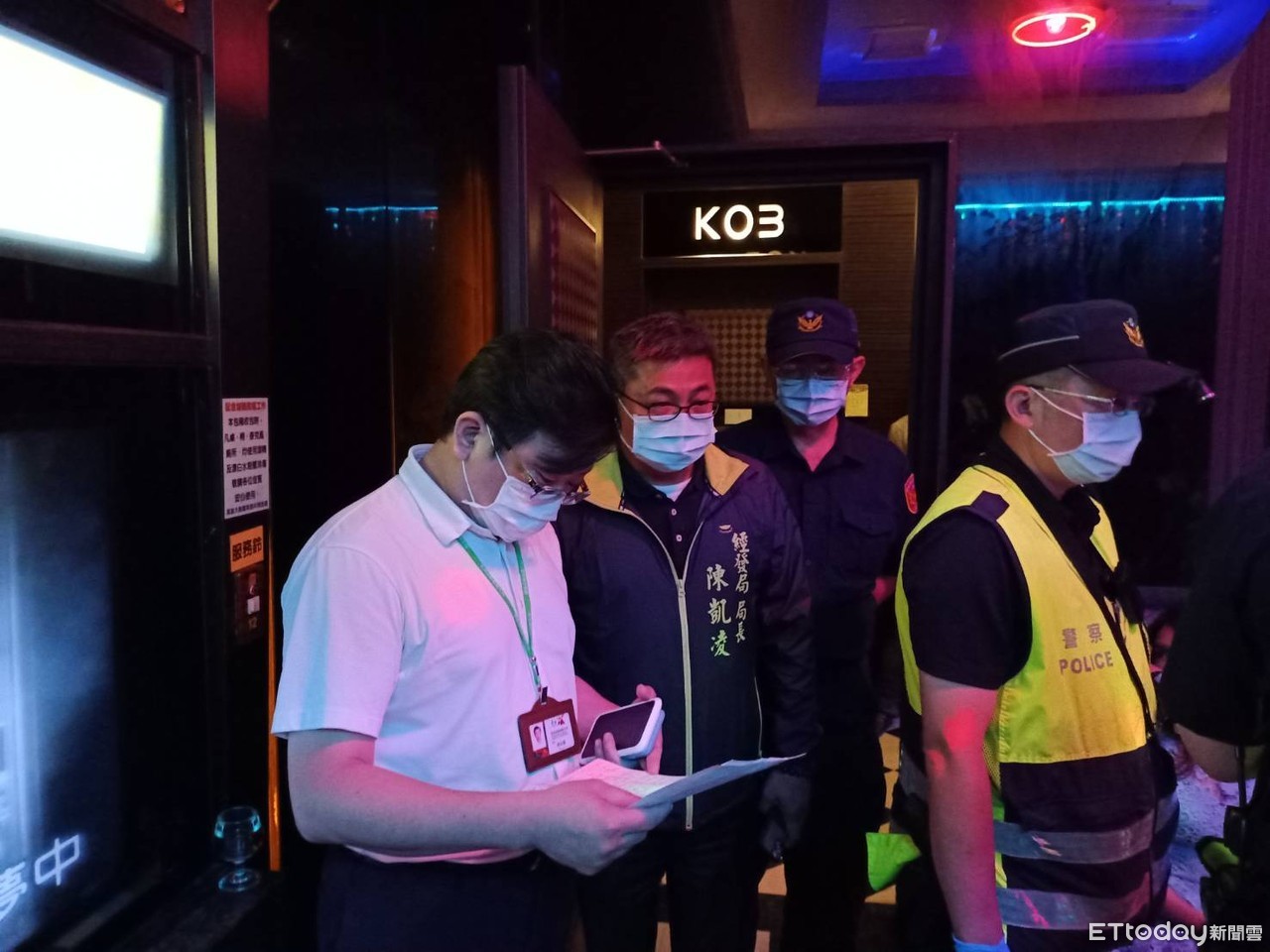 台南市警五分局14日深夜規劃專案勤務,配合市府聯合稽查小組,由五分局長李名昌、經發局長陳凱凌等人帶隊,針對轄區八大行業執行擴大臨檢,稽核特定營業場所,是否落實防疫規定。