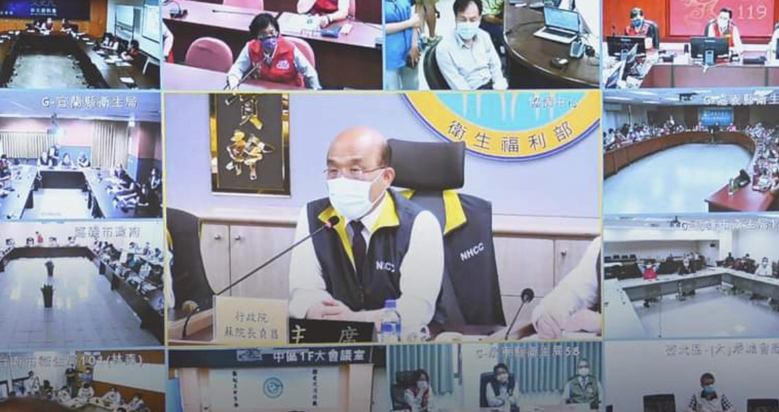 ▼蘇貞昌赴CDC與縣市首長視訊防疫會議。(圖/翻攝自Facebook/蘇貞昌)
