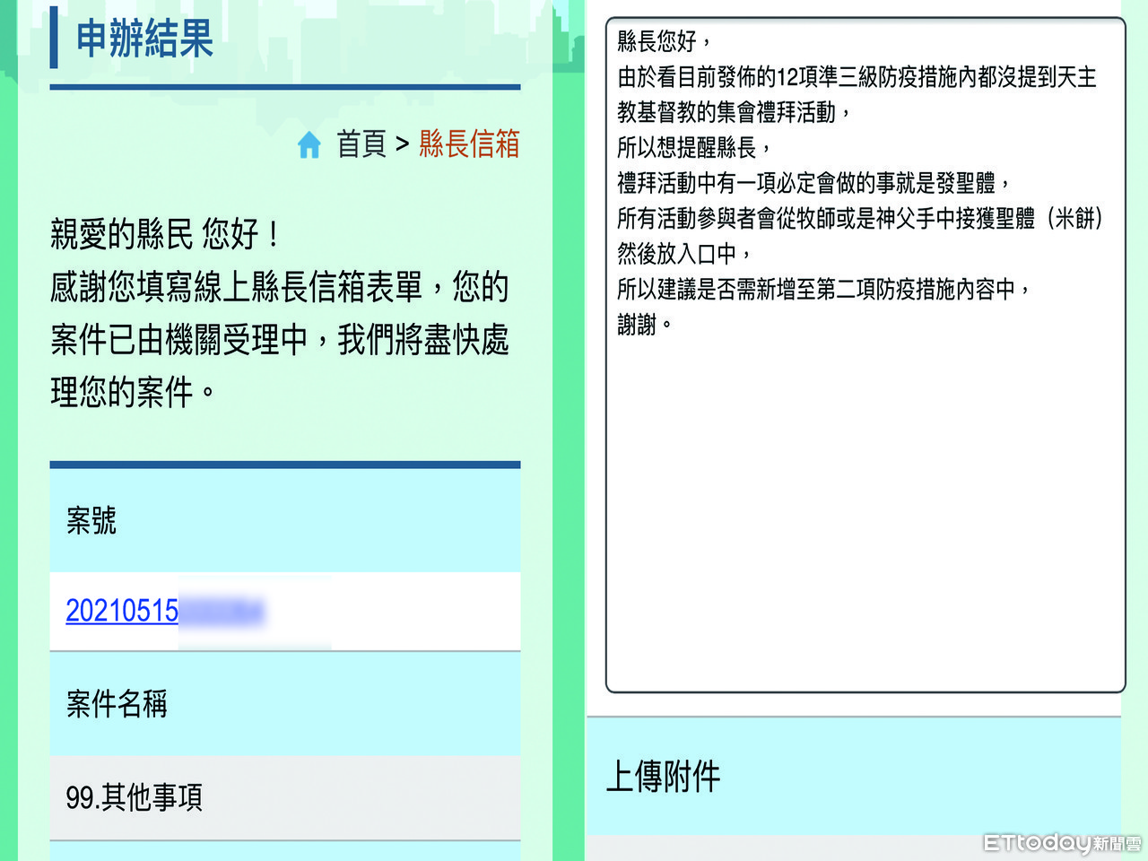▲民眾針對雲林縣府今日發佈之新制定防疫規範,未明訂宗教儀式部份,投訴縣長信箱反應。(圖/投訴者提供)