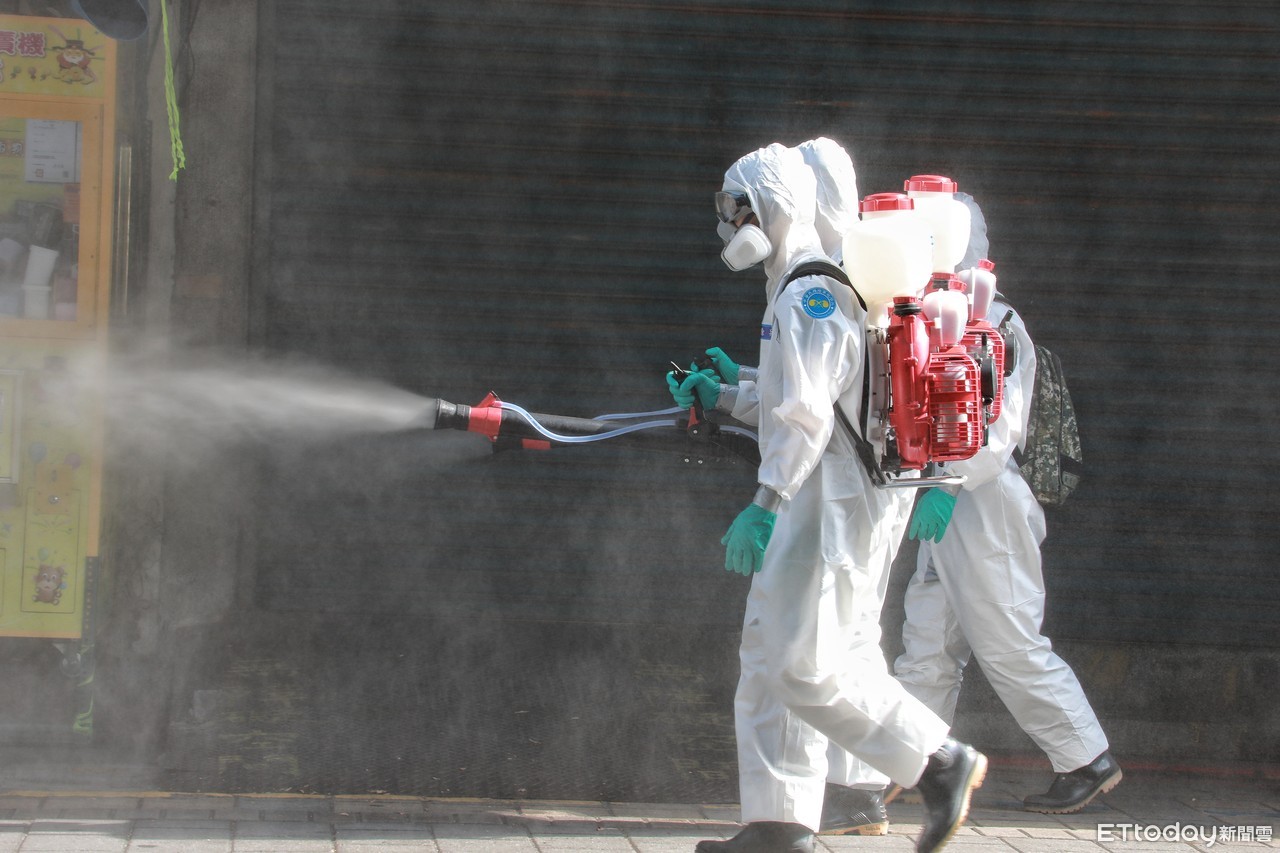 ▲國內疫情嚴峻,台北市環保局與國軍33化學兵群進行萬華全區第二波大消毒。(圖/記者周宸亘攝)