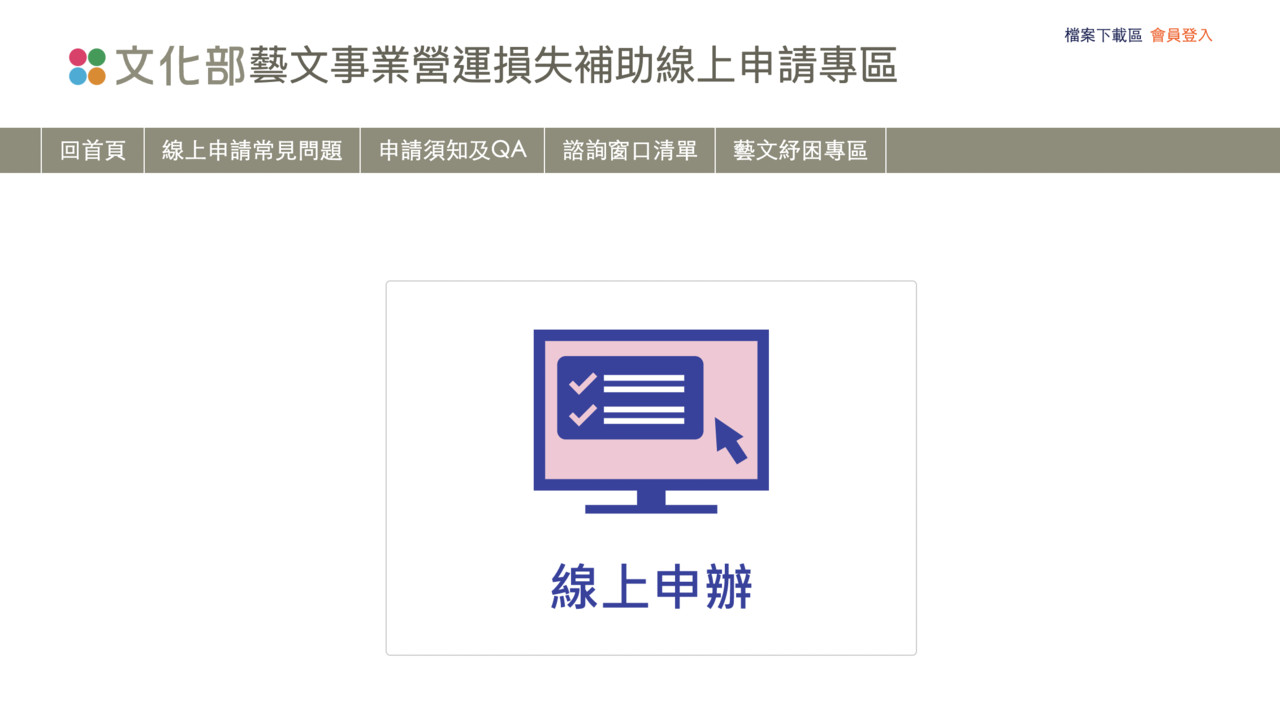 ▲文化部「藝文事業營運損失補助專案」線上申請。(圖/翻攝自藝文事業營運損失補助專案)