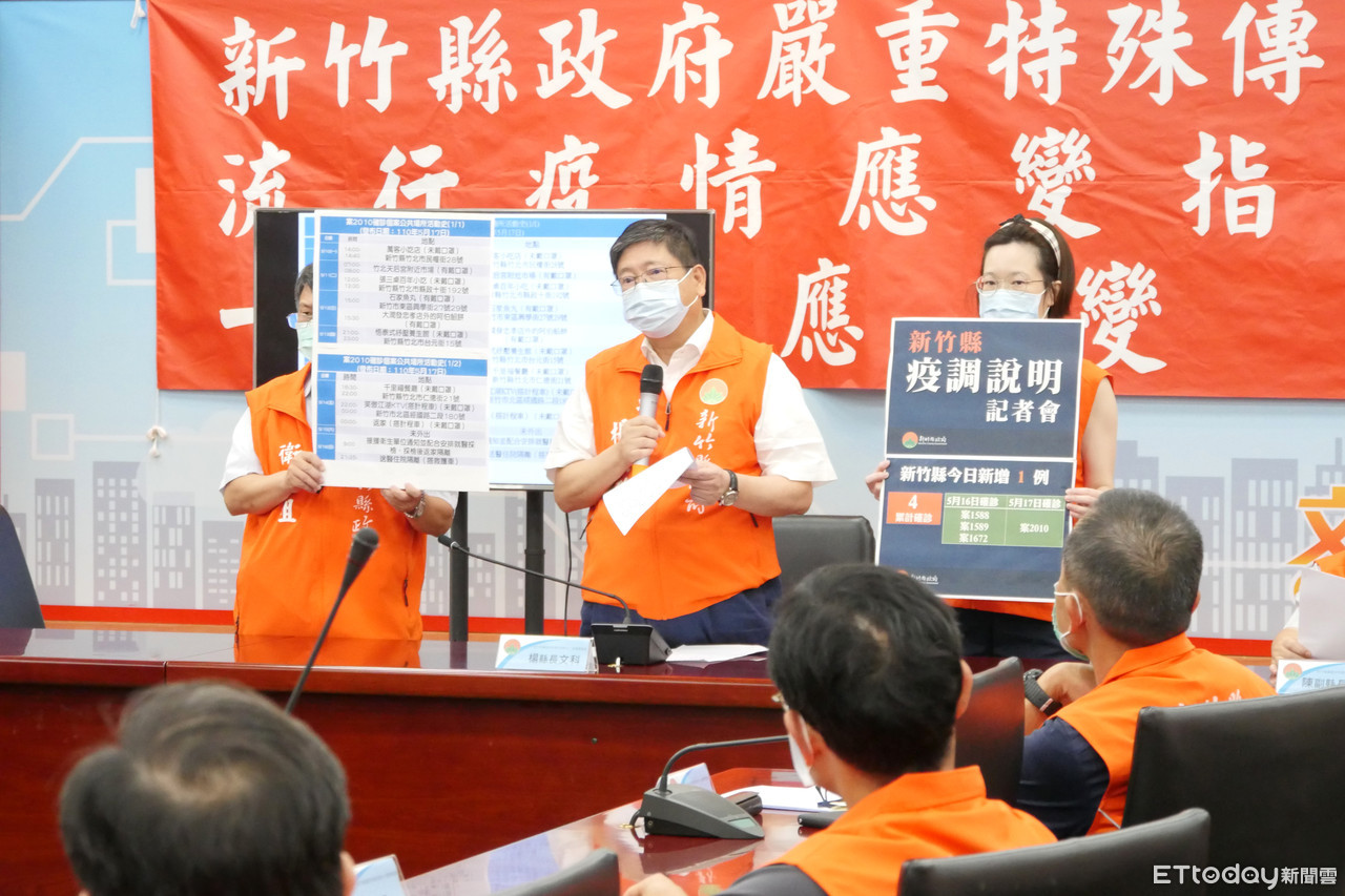 ▲新竹縣長楊文科下午召開記者會說明今日確診疫調。(圖/記者陳凱力翻攝,下同)
