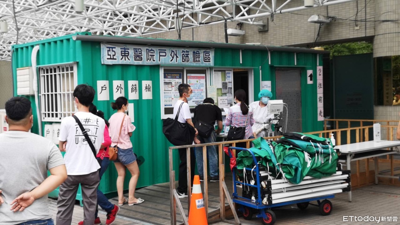 ▲新北板橋亞東醫院快篩站擠滿人潮。(圖/記者黃彥傑攝)