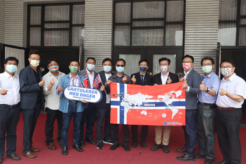 ▲▼多名立委一起在立法院議會前手拿挪威國旗以及寫著「祝國慶日快樂」的手舉板合照。(圖/台灣數位外交協會提供,下同)