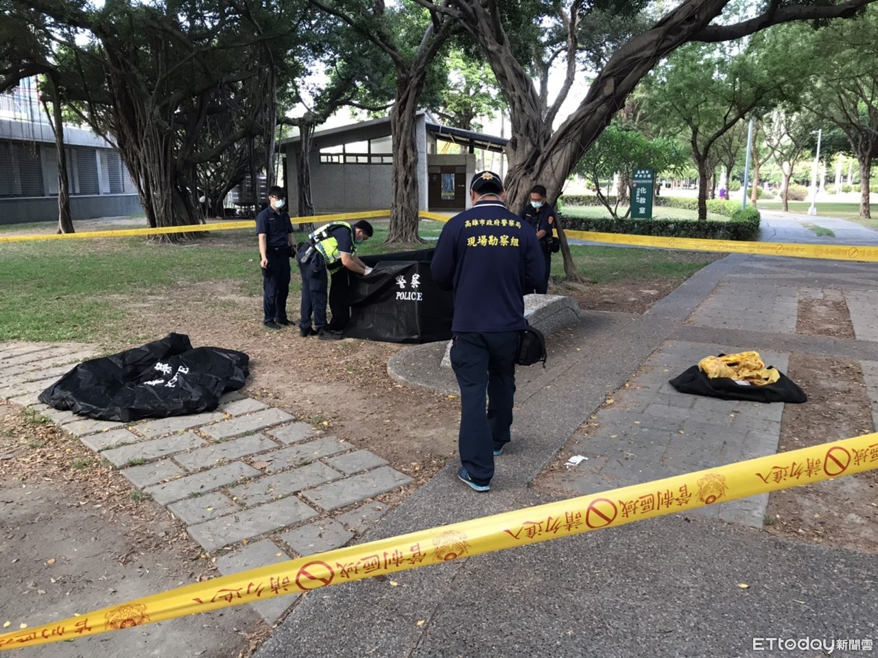 ▲高雄市中央公園發現一名男子腹部遭刺,當場死亡 。(圖/記者吳奕靖翻攝)