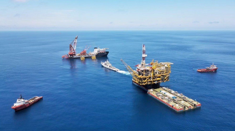 ▲完成浮托安裝的陸豐14-4中心平台。(圖/翻攝澎湃新聞)