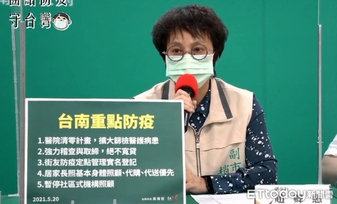 ▲台南零確診,台南市副市長趙卿惠主持防疫措施記者會,說明醫療零清計畫與口罩、17類業者停業稽查執法情況,並強調加強街友關懷、落實長期照顧者的照護服務。(圖/記者林悅翻攝,下同)