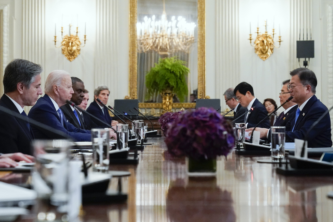 ▲美國總統拜登美東時間21日下午在華府會見南韓總統文在寅。(圖/達志影像/美聯社)