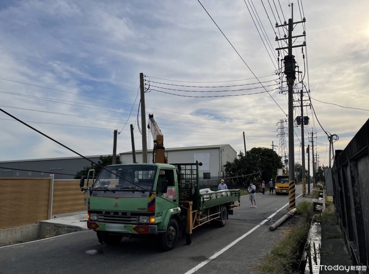 ▲一名吊車司機操作不慎,拉扯電線造成電桿倒塌 。(圖/記者吳奕靖翻攝)