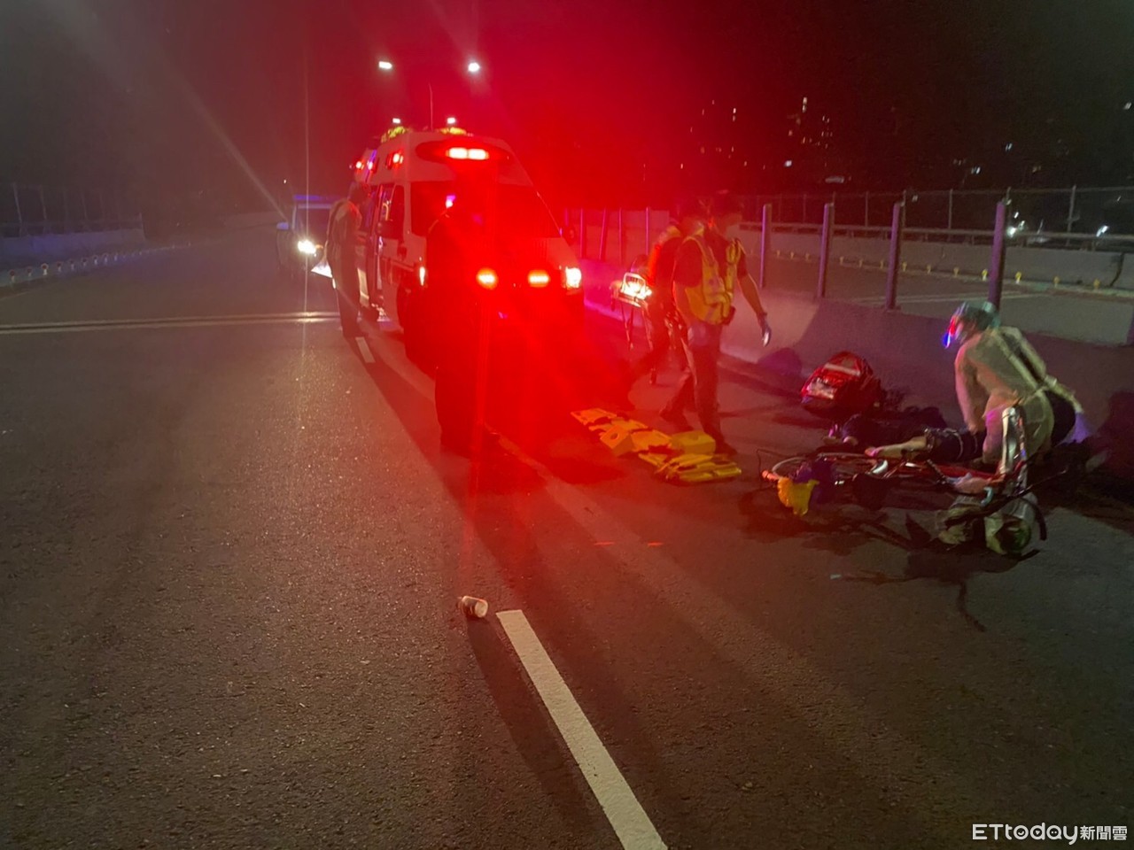 根據汐止警方調查,這起車禍發生在今晨1時12分左右,在汐止區新台五路2段240號前,林男騎著重機車要前往基隆方向,卻不甚在該處擦撞到騎著腳踏車在內側車道的黃姓老翁,林男騎車不甚追撞腳踏車後倒地、手腳多處擦挫傷,左膝、腳踝處也骨折痛得爬不起來,警方獲報後呼叫新北市消防局119救護人員到場馳援,黃姓老翁經送醫後併發內出血傷重不治。林姓男子酒測值為零,警詢後將依過斯致死罪嫌將他移送法辦。
