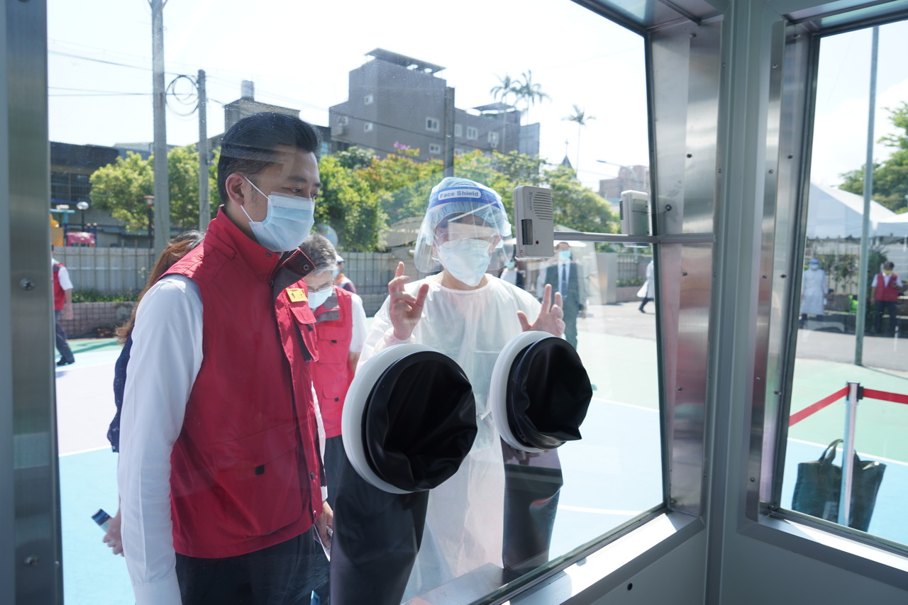 ▲林智堅上午在篩檢站開站前,前往視察開站前相關整備。(圖/新竹市政府提供)