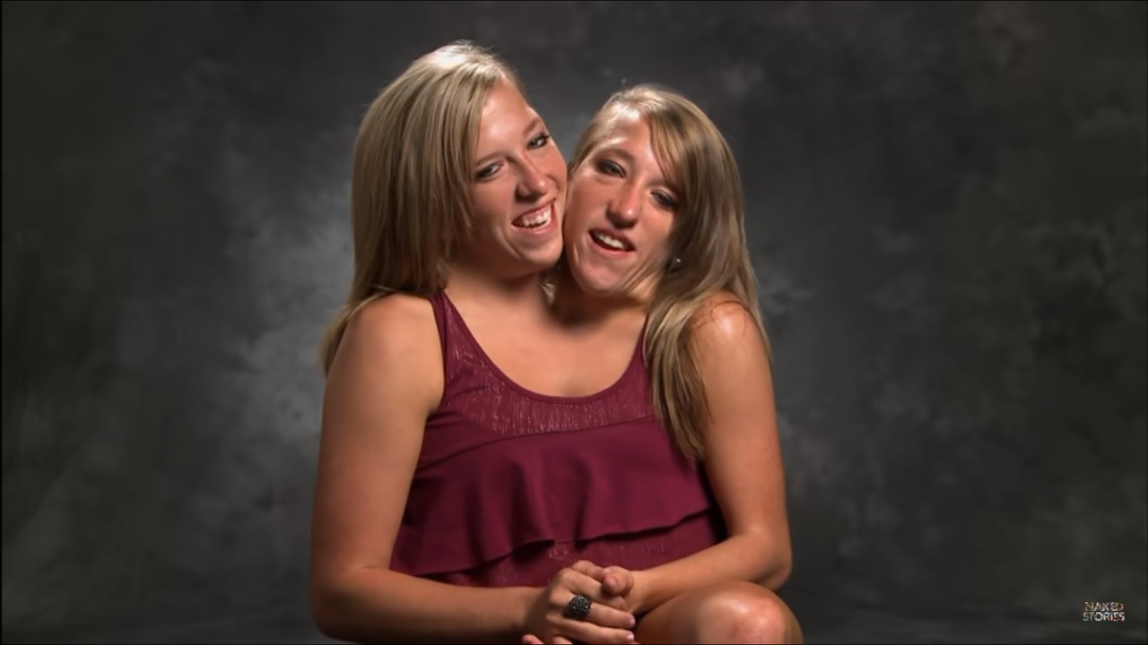 ▲美國連體嬰「亨塞爾姊妹」打破醫師謠言,如今31歲為國小教師。(圖/翻攝自Yotube@Naked Stories)