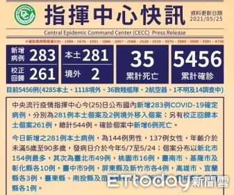 中央流行疫情指揮中心25日公布新增281例冠狀病毒病本土確診病例,其中台南市有10例,這是這波本土疫情爆發後,台南首度單日確診人數破雙位數,累計迄今共有18例確診。