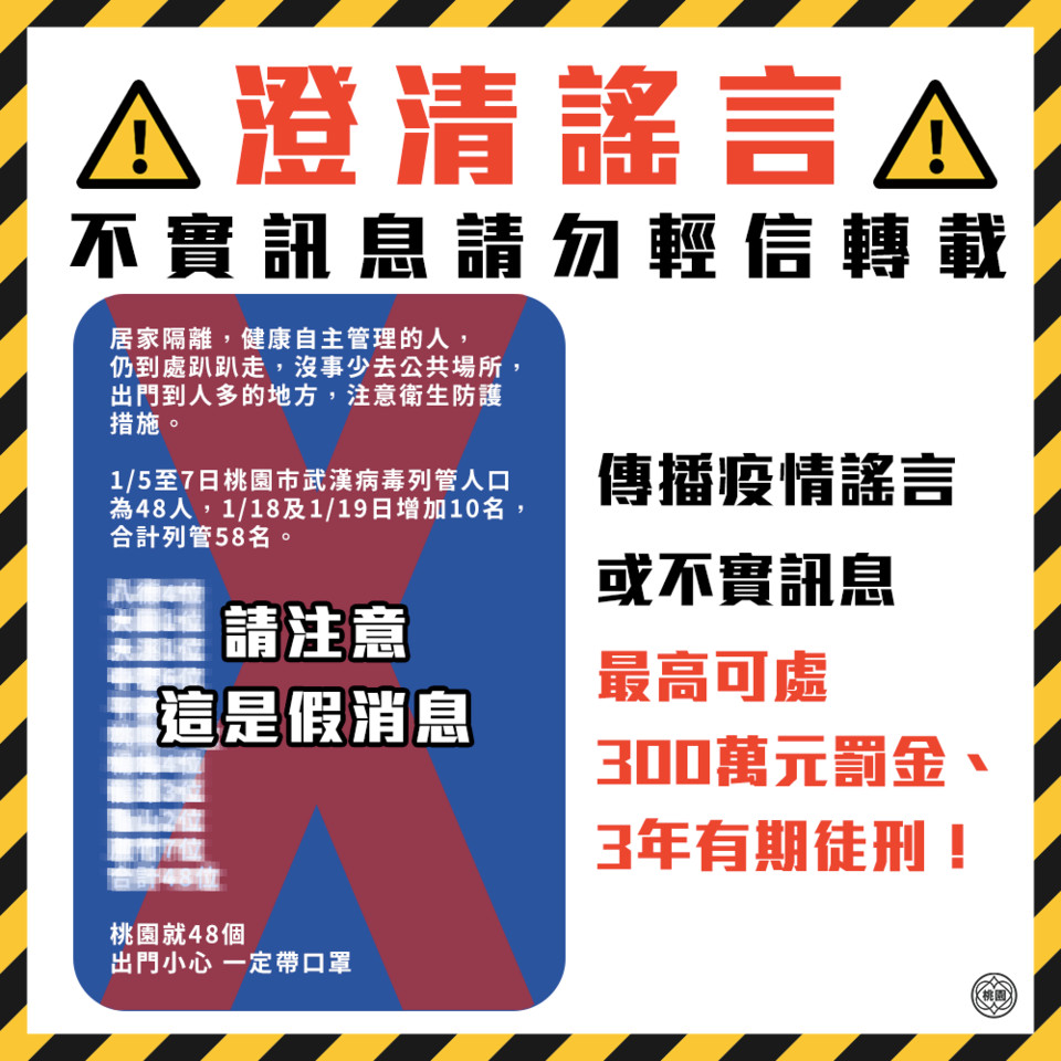 陳男在今年1月20日12時許,明知疫情嚴重,竟以臉書公開發文表示,「居家隔離、自主健康管理的人仍到處趴趴走,沒事少去公共場所,出門到人多的地方,注意衛生防護措施。1/5至7日桃園市武漢病毒列管人口為48人,1/18及1/19增加10名,合計列管58名」等語,造成桃園市民相當恐慌,更誤信將訊息以各種方式轉傳。