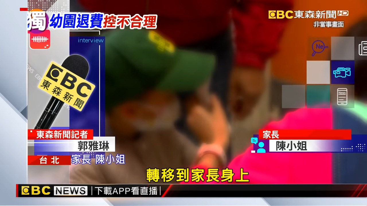 據《東森新聞》報導,桃園一名陳姓媽媽表示,她的孩子就讀私立幼兒園,在學期初就繳完全部的費用,每月不含交通費為1萬8500元,但5月17日至6月14日整整一個月不上課,如今只退還餐費及交通費3400元,甚至不到2成。