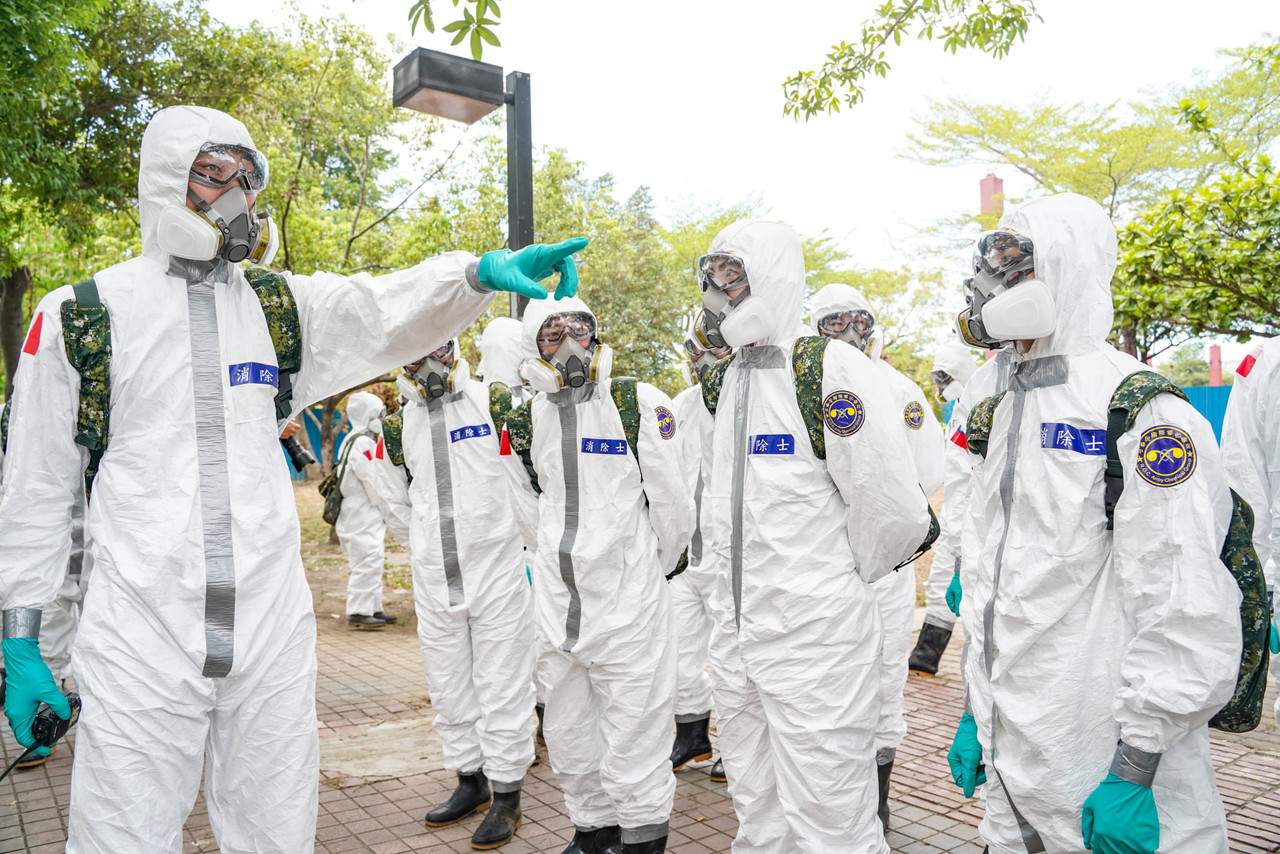 ▲國軍化學兵各地進行消毒,圖為化學兵進駐屏東縣潮州鎮。(圖/翻攝自Facebook/潘孟安)