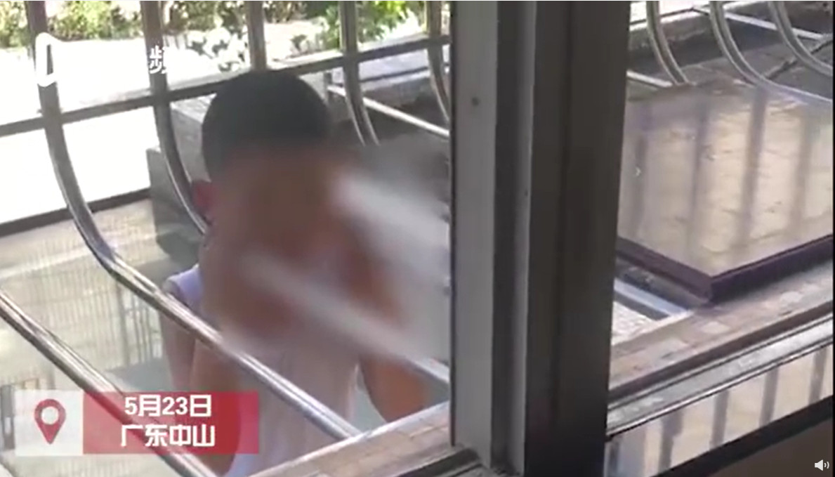 ▲男童整個人懸空在4樓外。(圖/翻攝自微博/N視頻)
