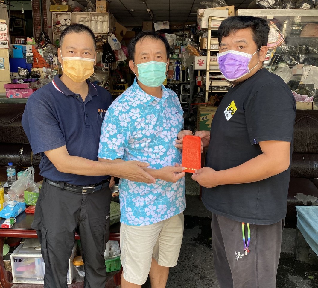▲太平車籠埔義消顧問團團長洪聰明(中)將募款交給張姓義消。(圖/洪聰明提供)