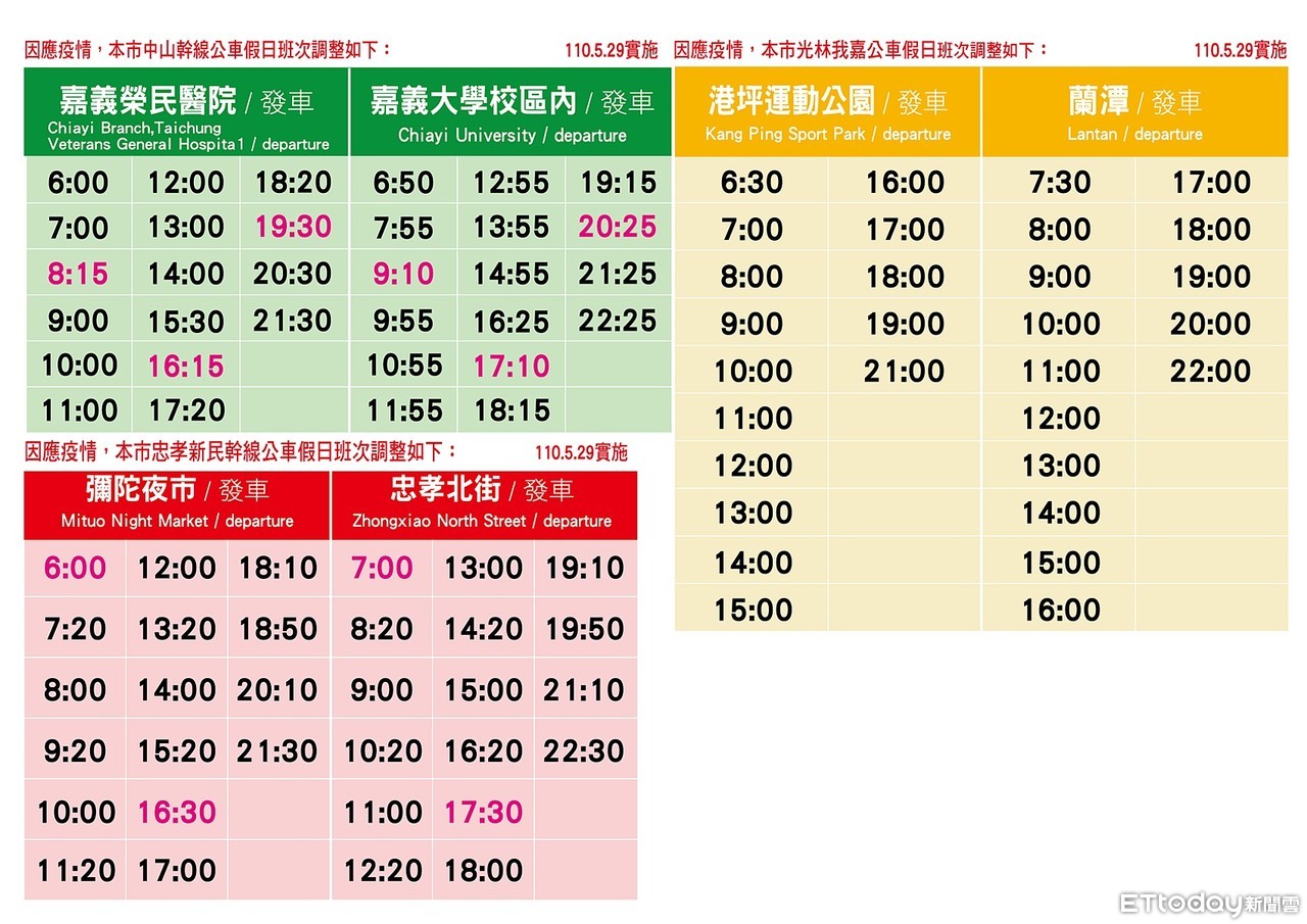 ▲嘉義市三路線公車假日減班班次表。(圖/嘉義市政府提供)