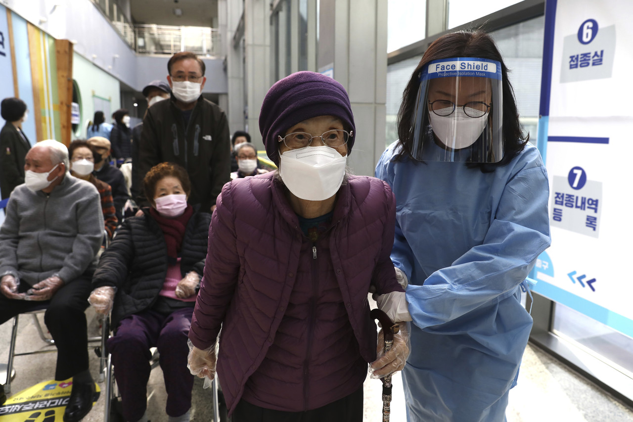 ▲南韓27日開放65歲至74歲民眾施打AZ疫苗,圖為先前接種輝瑞疫苗。(圖/達志影像/美聯社)