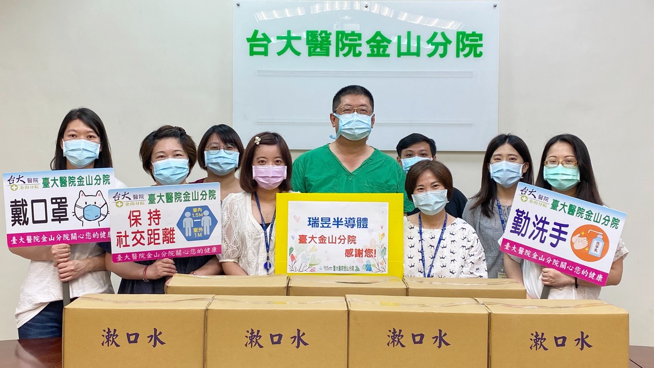 台大醫院金山分院表示,近日台灣因新冠肺炎疫情嚴峻,中央流行疫情指揮中心宣布全國進入三級警戒狀態,企業用行動力挺第一線醫護,西德有機藥廠熱心捐贈臺大金山分院漱口水給第一線醫護及工作人員加油打氣。