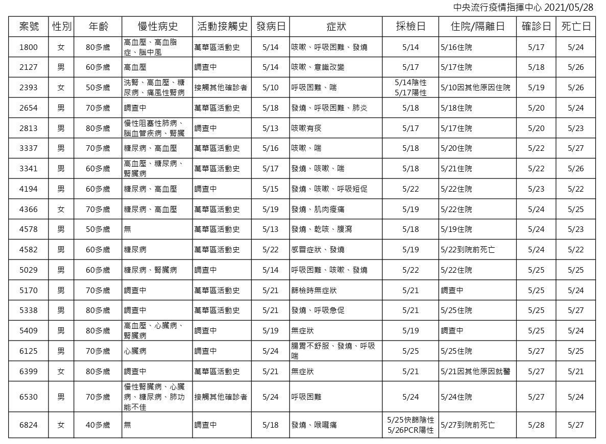▲指揮中心公布19例死亡個案詳情。(圖/指揮中心提供)
