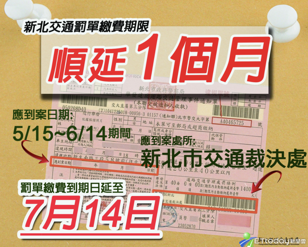 ▲新北交通罰單繳費遞延1個月。(圖/交通局提供)