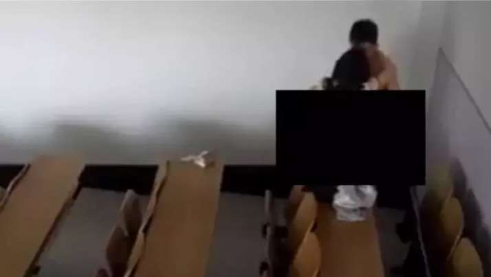 ▲猴急男女教室內做愛,結果畫面全被拍下放上網路。(圖/翻攝自YouTube/下同)