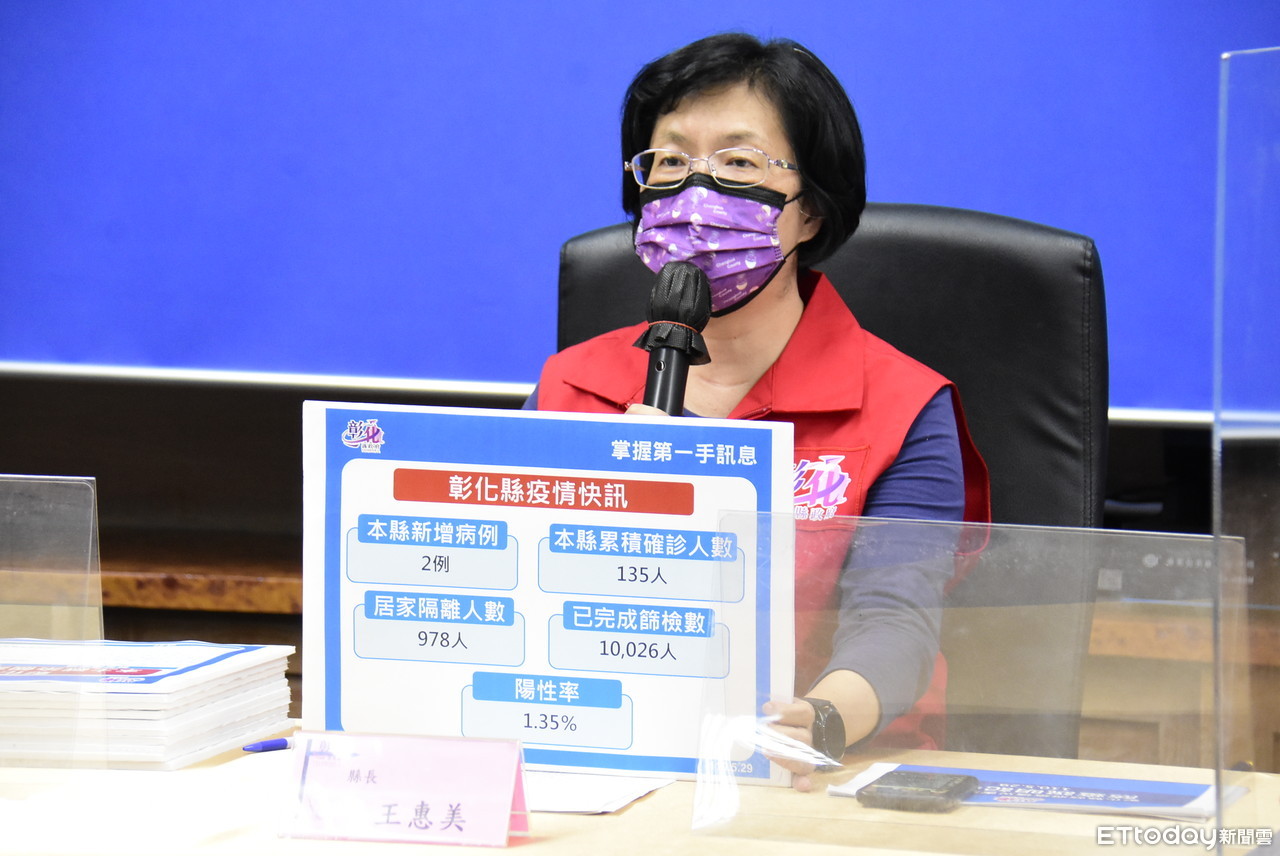 ▲▼彰化縣長王惠美公布新增2例確診,她說,雖然疫情有稍微壓下來,仍呼籲民眾口罩要戴好戴滿。(圖/彰化縣政府提供)