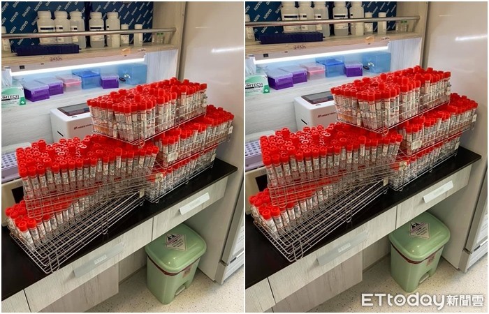 ▲疫情期間檢體量暴增,圖為亞洲大學附屬醫院檢驗科的內部照片。(圖/蔡姓副教授授權提供)