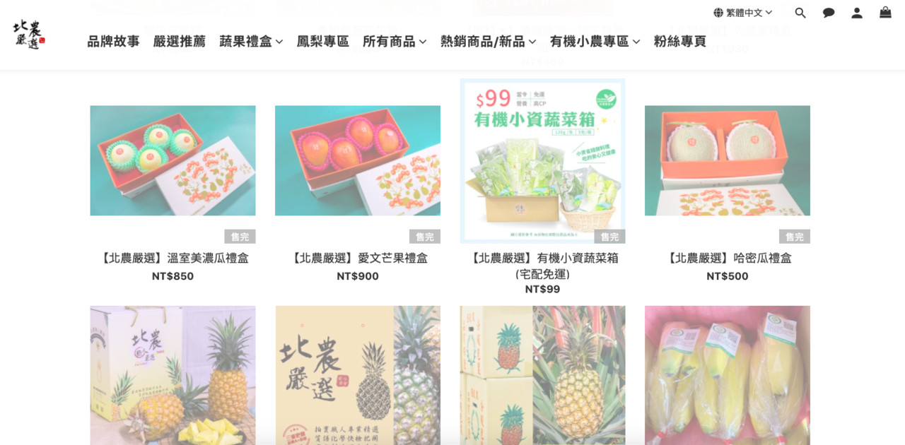 ▲▼北農嚴選許多商品已售完。(圖/翻攝自北農嚴選官網)