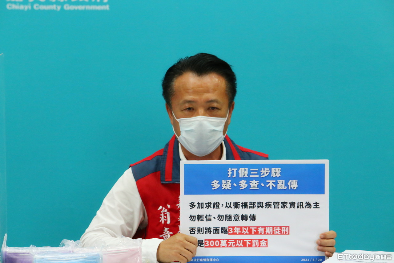 假新聞滿天飛,翁章梁指出,民眾接收到有疑慮的訊息時,如果本身沒有查證能力,就不要亂傳,以免涉及刑責,嘉義縣已移送多起涉嫌傳遞假訊息的案件,請大家記得多加求證,查證管道包括防疫專線1922,利用第三方假訊息查證平台,也可以向衛福部或地方衛生局查證。